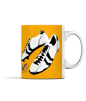 Alan Ball white boots mug in a choice of 1970s home or away colours.