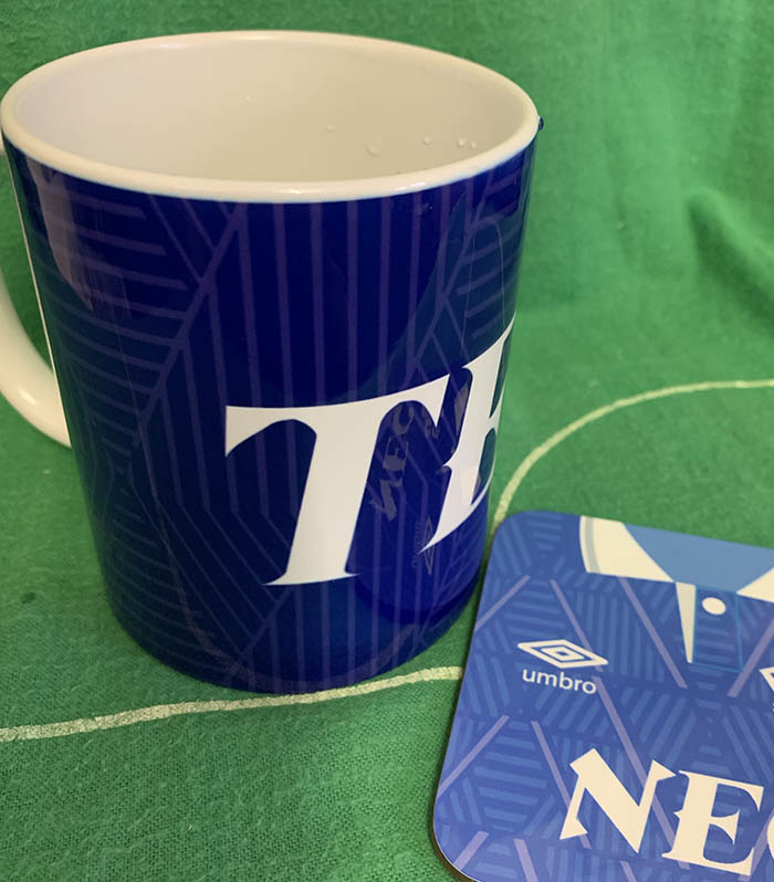 This mug design depicts our much underestimated kit design pattern of 1989-1991. The iconic Umbro strip has become a retro favourite with Evertonians..