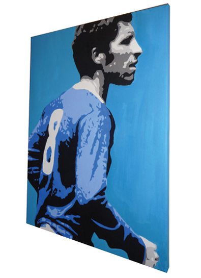 Hand painted canvas of Everton legend Alan Ball wearing the number 8 shirt.