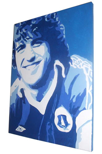 Hand painted canvas of Everton goalscoring legend Bob Latchford sporting a new look perm during a pre season photo call.