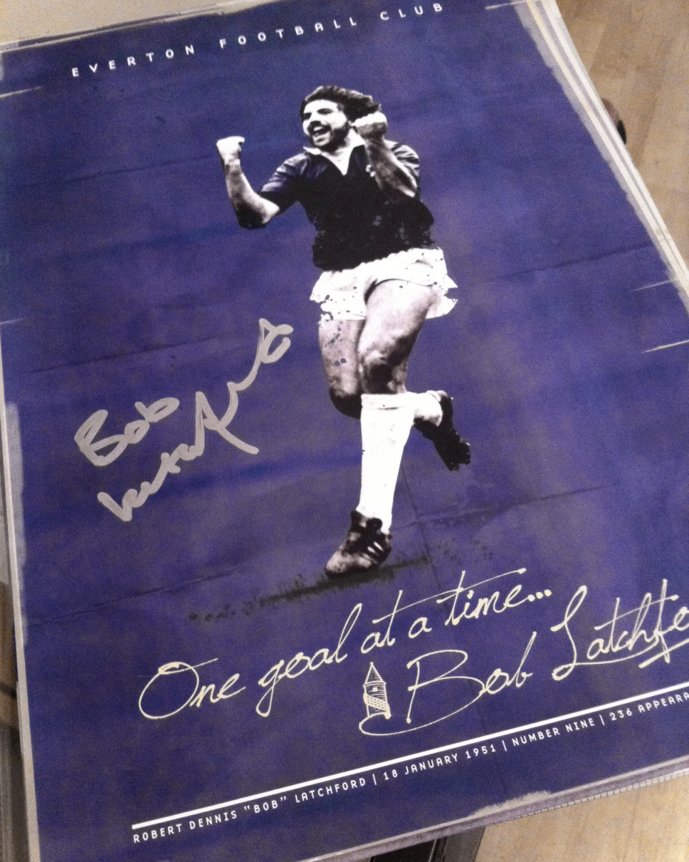 Hand signed by Everton goalscoring Legend Bob Latchford.