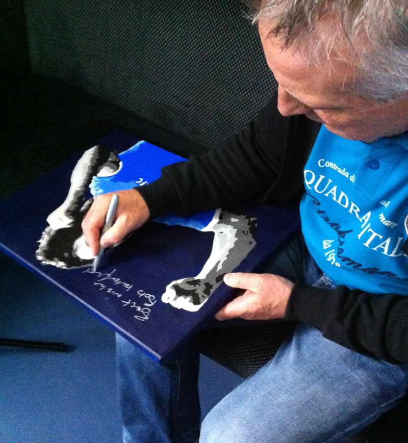 This painting is very rare, in fact this is the only one of its kind. Bob signed this one on his recent visit before the Swansea home game in October 2014.