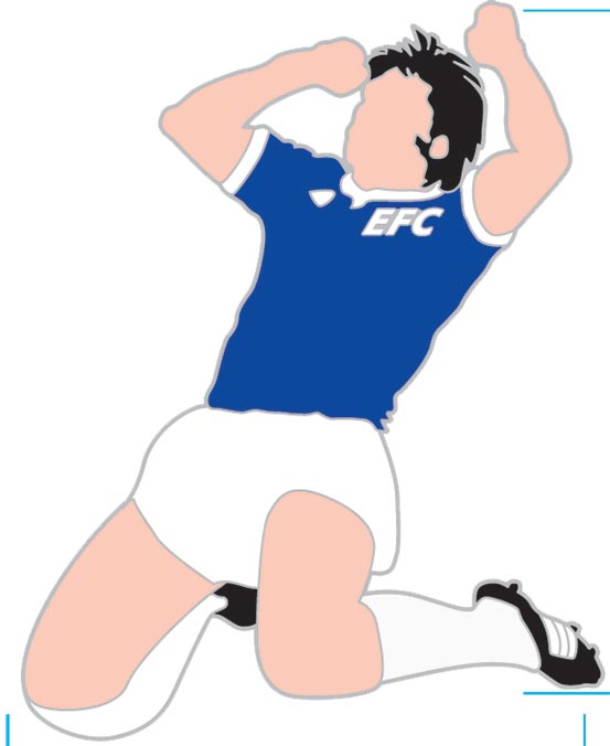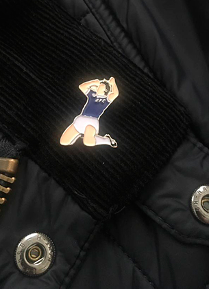 It’s forty years since Bob Latchford scored 30 league goals for Everton in the 1977/78 season. Still loved to this day, Big Bob is celebrated here with our new enamel pin badge of that iconic image of Bob sliding in front of the Gwladys Street end after the thirtieth hit the back of the net.