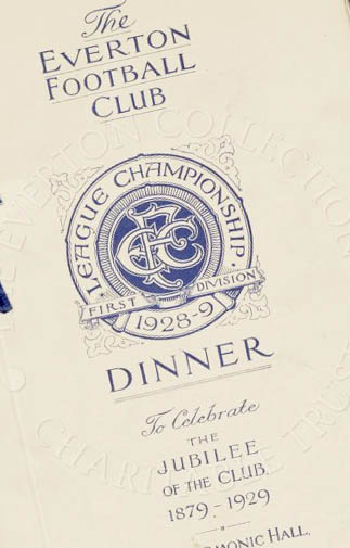The Everton FC Jubilee dinner, celebrating their 50th anniversary, was held in 1929, during the 1928/29 season.