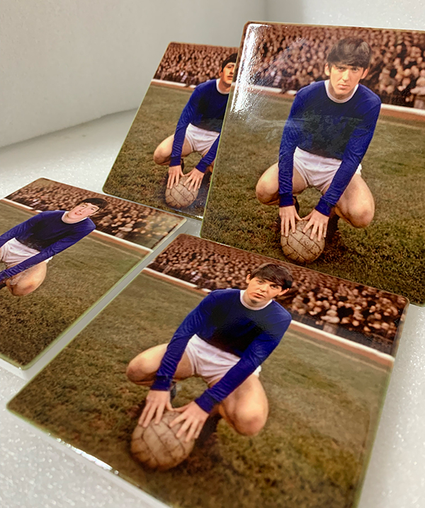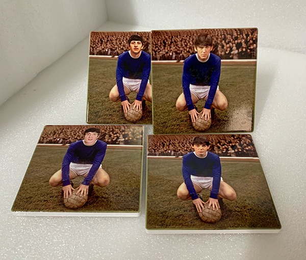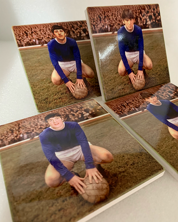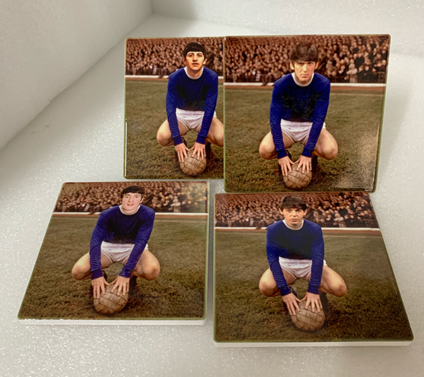 These coasters show The Beatles if they ever pulled on the famous shirt of Everton FC. Featuring John, Paul, George and Ringo in the classic mid 60s Everton strip. Were they Blues? Well they did go to the 1968 FA Cup Final didn’t they?