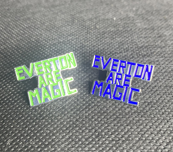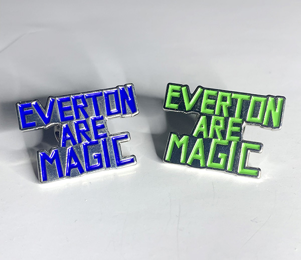 Classic 70s Everton Are Magic enamel pins.