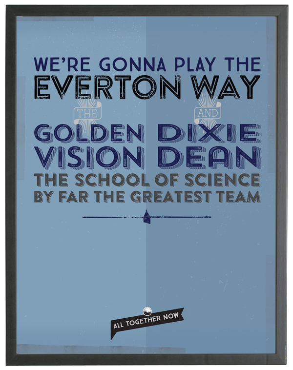 A beautifully produced art print set featuring song lyrics from three popular Everton songs โ Forever Everton, Here We Go and All Together Now. A great gift for Evertonians!