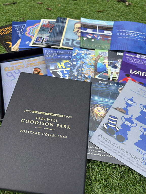 Each postcard shows a graphic outlining an element of the game on the front with the reverse stacked with match statistics. A lovely souvenir of our final season at Goodison Park.