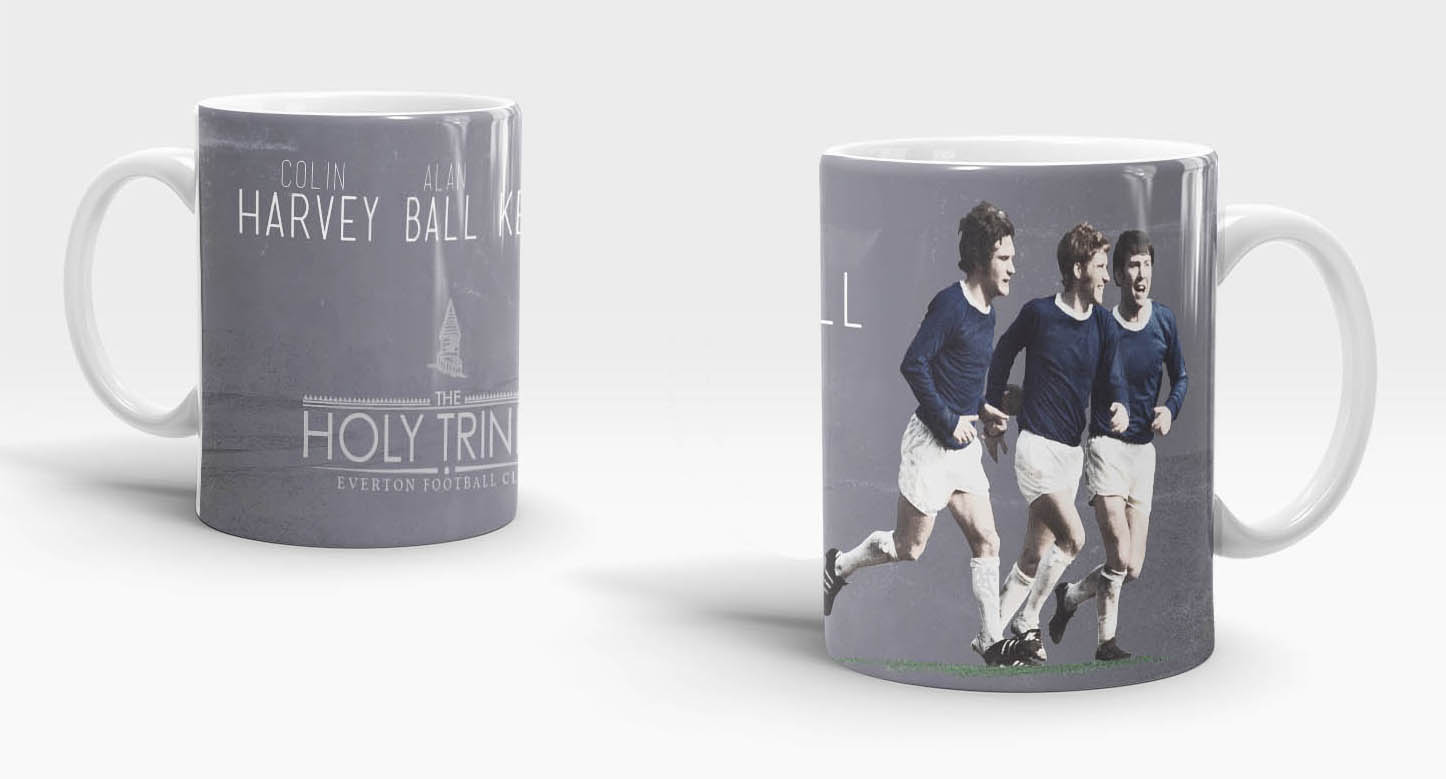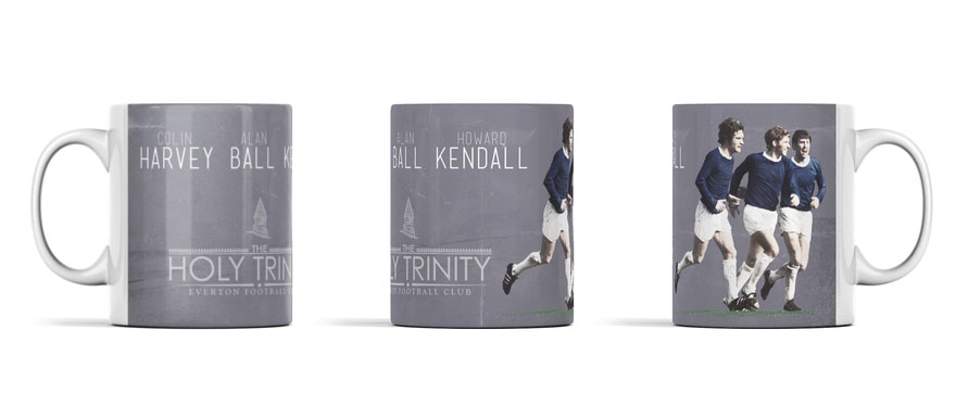 This mug design shows Everton’s most famous midfield trio Kendall, Ball and Harvey. Drawn in our own unique style and our Holy Trinity branding this is a great gift for any Evertonian.