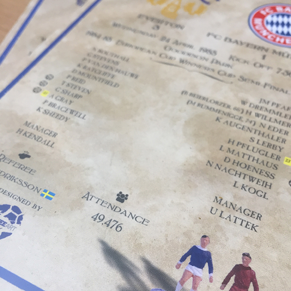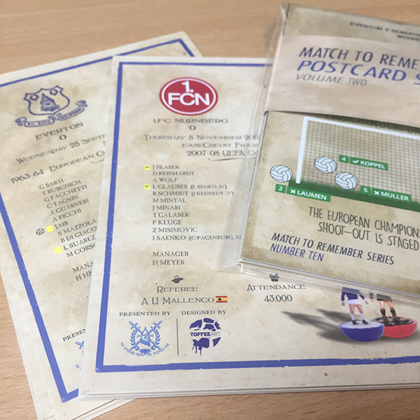 So well received by supporters at our stall at St Luke’s Church and The Winslow Hotel pub at we have continued our Match To Remember postcard with a second series, the theme – Everton in Europe.