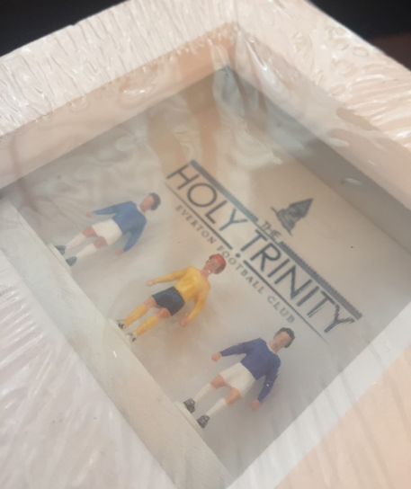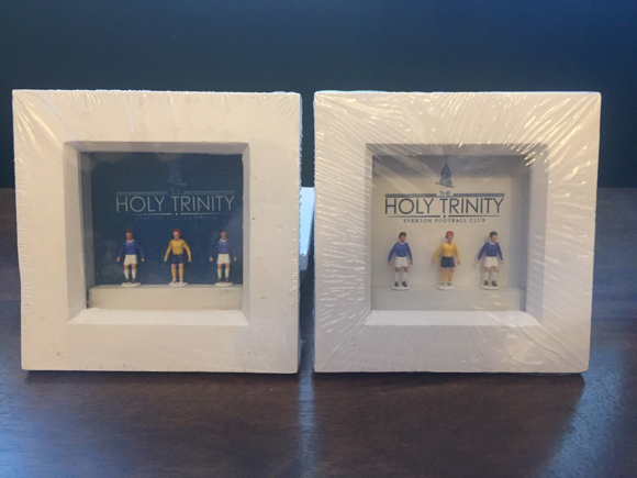 Kendall, Ball and Harvey. The Holy Trinity. Available now set in a deep box frame, hand crafted showing players in the classic Everton 1970 home and away kits.